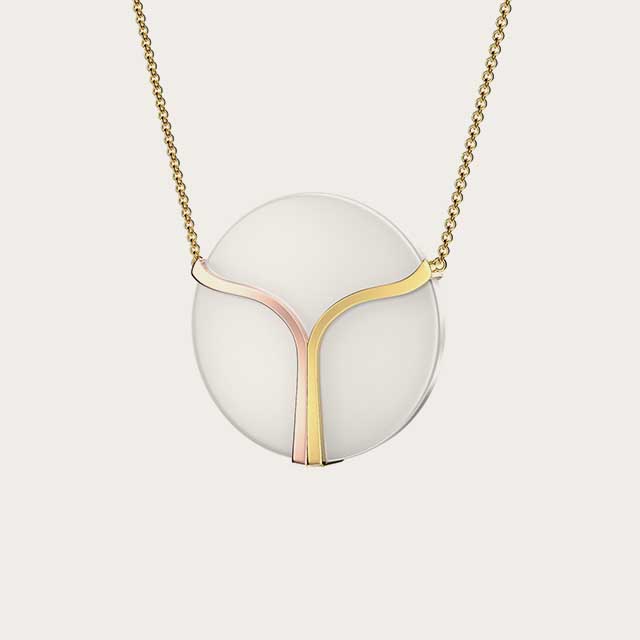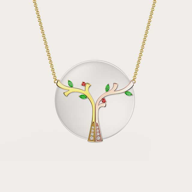 翡翠质感细腻,色泽温润,配以18K金精心雕琢的连理枝