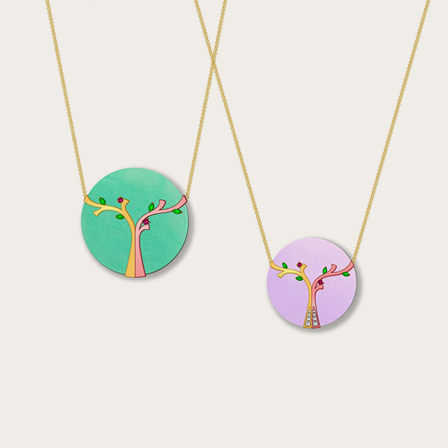 连理枝根部镶嵌透亮钻石为点睛之笔