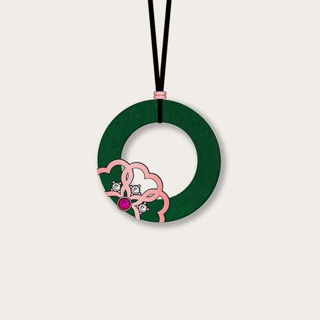 这款花好月圆吊坠以天然翡翠为主石,以翡翠为天,以珍珠为月,来描述一幅花好月圆美图